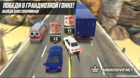 Игра предлагает геймерам невероятные цифры участников соревнований, в одном заезде их может быть тысяча! Выбери свою тачку и побеждай лихачей на оживлённых трассах. Гоняй внимательно избегай столкновений с препятствиями и другими участниками дорожного движения. Копейка, Шестёрка, Приора, Вести и ещё куча других представителей нашего автопрома ждут тебя! Прокачай свой ВАЗ и сделай из него мощную спортивную машину, способную обогнать любого, как стоячего.