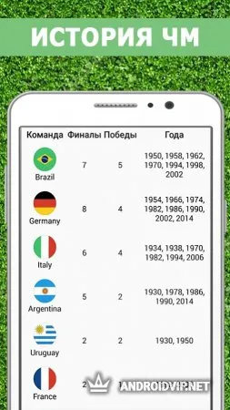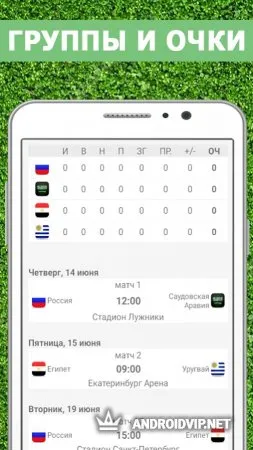 Чемпионат мира по футболу 2018 Россия | Кубок мира - отличное приложение для всех поклонников футбола, в частности тех, кто собирается следить за самым грандиозным спортивным событием 2018 года, которое пройдёт в России. Конечно же, речь о Чемпионате мира. В этом приложении содержится подробное расписание игр всех участников турнира, начиная от группового этапа и до финала, группы, турнирные таблицы и полная статистика матчей. Также вы не упустите самые горячие новости на данную тему, узнаете лучших бомбардиров, игроков ЧМ и другую полезную информацию. Будьте в курсе всех событий главного футбольного праздника.