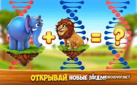 Вы можете завести аж 130 самых разных видов животных, сухопутных и морских, жирафов, слонов, медведей, львов, осьминогов, китов и многих других! А также у вас есть возможность создать свой собственный, уникальный вид животного, которого нет ни в одном другом зоопарке!