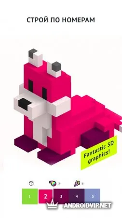 Pixel Builder - это трёхмерные раскраски для пользователей всех возрастов. Окунитесь в мир ярких красок и вдохните жизнь в разнообразные 3D-модели, которых в приложении насчитывается порядка сотни. Используйте усиления, чтобы увеличить скорость окрашивания деталей, а также применяйте эффектные фильтры, накладывайте свет и образуйте тени. После того, как ваш трёхмерный шедевр будет готов, им можно поделиться в социальных сетях.