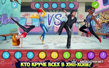 Хип-хоп битва: девушки VS парни - покажи, все свои умения на ярком танцполе, окружённом зрителями! Это танцевальная схватка девочек и мальчиков, где обе стороны настроены на победу! Тебе предстоит основать крутую команду из танцоров, обучить их эффектным и красивым движениям стилей break dance, freestyle и с этим багажом знаний отправить их на танцполы, которые могут располагаться в метро, на спортивных полях и других площадках. Ну и конечно, не забудь про стильные прикиды, чтобы не только действиями на сцене, но и внешним видом поразить всех вокруг.