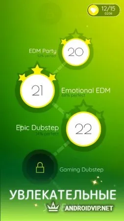 Dancing Ballz: Magic Dance Line Tiles Game - это очень яркая и насыщенная игрушка от умельцев из AMANOTES. Запустив игру вы увидите цветастое игровое поле с дорожкой, по которой будет перемещаться шар. Шар носится по этим путям под зажигательную и ритмичную музыку в стиле dubstep и edm. Что требуется от игрока? Вовремя тапать на экран, а именно делать это тогда, когда шар достигнет определённых точек на своём маршруте. Эти точки связаны с музыкальным ритмом, звучащим во время игры. Таким образом вы будете безраздельно связаны с музыкой в игре, и сможете почувствовать себя настоящим диджеем! Пройдите все 40 уровней и откройте все шары!