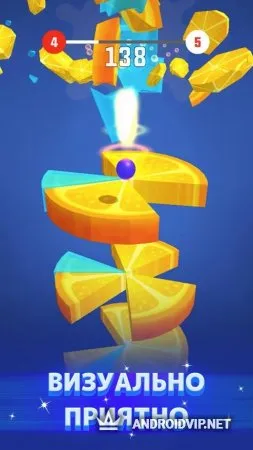 Helix Crush - это сочная музыкальная игра, в которой вы будете управлять спелыми фруктами, расположенными по спирали. Свайпите их расположение, чтобы прошмыгнуть шариком между дольками, или нарезайте кусочки фруктов, следуя напролом сквозь них. Оптимистичная фоновая музыка поднимет настроение и добавит куража или поможет расслабиться. Игровой процесс настолько прост, что совершать все действия можно всего лишь одним пальцем.