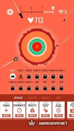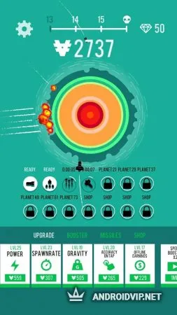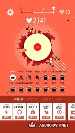 Нравится играть за злодеев? Planet Bomber! - это именно то, что вам нужно. Нет, в этой игры вы не будете бегать по городу с пушкой и мочить всех подряд, пока вас не поймают копы. Здесь цель куда масштабнее: вы будете уничтожать целые планеты! Для этого в вашем арсенале будет многообразие различных ракет, которые планомерно будут разрушать все планетарные слои вплоть до ядра. А за каждую успешно разрушенную планету вы будете получать деньги, которые можно потратить на ещё более мощное оружие. Запускайте орудия и наслаждайтесь, наблюдая за тем, как очередная планета постепенно исчезает из просторов Вселенной!