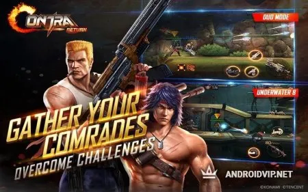 Garena Contra Returns - встречайте легендарную Контру в новом обличии! Два здоровенных воина (подозрительно похожих на суперзвёзд 80-х - Арнольда Шварценеггера и Сильвестра Сталлоне) с огромными пушками наперевес вновь готовы накостылять своим неприятелям.