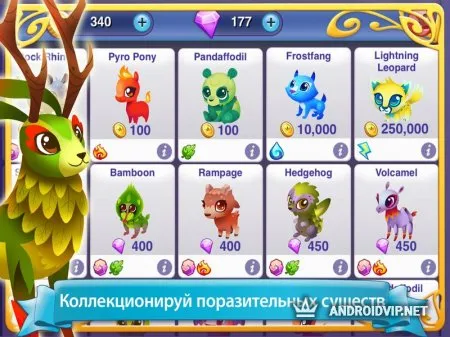 В игре вас ожидают интересные задания. Выполняйте их и открывайте новые виды животных, которых в игре более трёхсот видов! Ухаживайте за своими питомцами, чтобы получить из беззащитного детёныша мощного воина, готового биться на вашей стороне. Бейтесь на состязаниях и получайте призы, играйте с друзьями и ставьте рекорды!