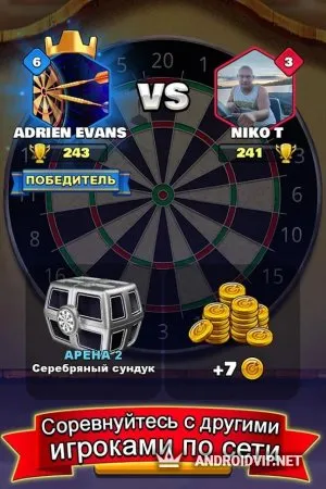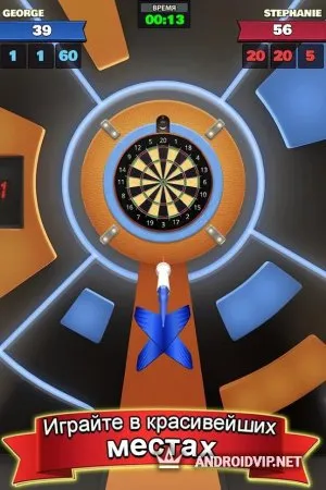 Darts Club - это красочная мультиплеерная игра в дартс, в которой геймеры получать возможность соревноваться с другими, метая дротики в мишень. Турниры проводятся в самых разных местах и открываются по мере прохождения. В игре многоэтапная система улучшений, благодаря которым вы сможете получать новые виды дротиков с улучшенными характеристиками. Прокачивайте каждую часть снаряда: наконечники, баррели, хвостовики, оперения. Чем лучше будут ваши дротики, тем выше шансы на точное попадание и соответственно на победу.