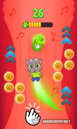 Газики Говорящего Тома - все мы помним по предыдущим играм серии с Говорящим Томом, что этот пройдоха может не только мебель в доме подпортить, но ещё и воздух. В новой игре эту биологическую потребность разработчики взяли за основу: выпускайте газы, стартуя с унитаза и поднимайтесь всё выше и выше в узком пространстве, собирая монетки.