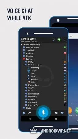TeamSpeak 3 Voice Chat Software - это голосовой чат, который позволит группам людей быть вместе на связи и обмениваться нужной информацией, используя интернет или приватные сети. ТимСпик 3 очень удобен для геймеров, для общения родственников, друзей и бизнес партнёров. Играйте в любимые игры и переговаривайтесь со своими тиммейтами и обсуждайте тактики, стратегии и так далее. Приложение можно запустить на своём приватном сервере, либо присоединиться к уже имеющемуся. Программа отлично оптимизирована для Android.