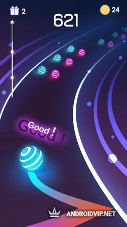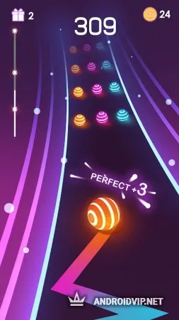 Dancing Road: Colour Ball Run! - яркая музыкальная игрушка с сочным, ритмичным саундтреком, в которой игроки будут тестировать свою координацию и ловкость пальцев. Цель проста: вам, управляя шариком, необходимо преодолеть как можно большее расстояние по цветастым дорожкам, собирать монеты того же цвета, что и шарик, а также открывать новые плюшки.