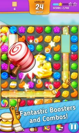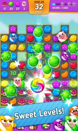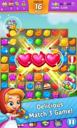Собирайте три и больше конфет одного цвета, чтобы получить серию! Выигрывайте бонусы, очищайте игровое поле и переходите на следующий уровень, которых в игре более двухсот!