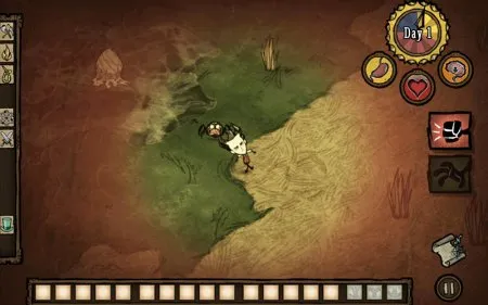После смерти вы можете заполучить уровень опыта или разблокировать нового героя. Персонажей здесь несколько, каждый со своими индивидуальными умениями. Разработчики в точности адаптировали игровую механику на мобильные устройства. Принцип крафтинга предельно понятен. С его помощью можно обустроить свою базу и даже подружиться с местными обитателями, так называемыми свинолюдами. У Don't Starve нет конца, как такового, однако есть одна черта, преодолив которую, можно сказать, что в какой-то мере игра пройдена - это наступление зимы. Когда придёт зима - сложность игры умножится.