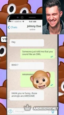 ANIMOJI IPHONEX emoji - это приложение, благодаря которому не только пользователи десятого Айфона смогут получить удовольствие от создания Анимоджи, но и пользователи устройств на ОС Андроид! Что такое Анимоджи? Это анимированные смайлы, повторяющее мимику пользователя. Теперь вы не будете ограничены тем стандартным набором смайлов которые предлагают нам различные программы, а сможете заставить любой смайлик скорчить любую физиономию, тем самым создав уникальный эмоджи!