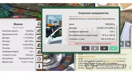 В увлекательной игровой манере, начав карьеру бизнесмена, вы научитесь правильно распределять своё время, вне зависимости от уровня занятости. Занимайтесь недвижимостью, развивайте своё дело, учитесь в университете, знакомьтесь с интересными людьми и умело распределяйте своё время между всеми этими делами. Поверьте, сделать это вполне реально, стоит только захотеть.