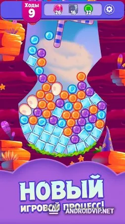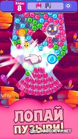 Отличительной чертой этой игры "3 в ряд" от других таких же проектов является отсутствие ячеек с элементами. Когда вы взорвёте несколько пузырьков одного цвета, то остальные под влиянием силы тяжести переместятся на образовавшееся пустое место.