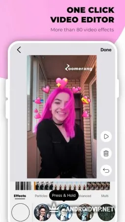 Zoomerang - Короткие Видео - прикольное приложение, которое способно быстро и просто записывать короткие видеоролики с музыкой и красивыми эффектами. И всё это при помощи одной кнопки!