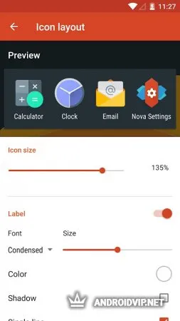 К примеру, вы сможете по своему настроить сетку иконок на рабочем столе, изменив её размер и количество элементов, получите возможность играться с цветами папок, иконок и вкладок, применять эффекты при скроллинге и свайпе страниц экрана, установить другой шрифт, менять размер виджетов и многое другое.