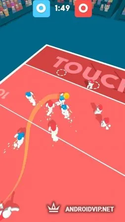 Перемещайте членов команды при помощи касаний пальцами по экрану, захватывайте зоны и вынуждайте ваших визави терять мяч. Побеждайте и продлите свою победную серию на максимально возможный срок!