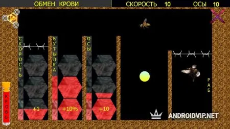 Эта же участь постигла и ос, которые начали питаться не пыльцой с цветочков, а кровью животных. Возьмите управление большим роем этих насекомых и восполняйте свою жажду, впиваясь в коров, свиней, коз и других жертв.