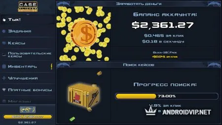 Симуляторы кейсов набрали невероятную популярность в среде игр на Android, и разработчики активно конкурируют между собой за создание лучшей игры в данном жанровом направлении. Case Clicker 2 - пример качественного сима кейсов с кликером вдобавок.