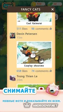 Своим пушистым мурлыкам. которых в игре присутствует 25 видов, можно давать имена, менять их внешний вид, обучать сложным цирковым трюкам. Своего любимца, благодаря огромному разнообразию модных одежек можно превратить в Кота-репера, Кота-Супермена, Кошечку-принцессу. Игроки могут гулять с котами по саду, играть различными игрушками, одевать своих питомцев в модные наряды и даже делать памятные фотоснимки для личного альбома. В социальных сетях можно делиться фотографиями с другими игроками и своими друзьями