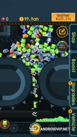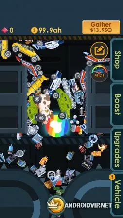 Запустите огромный и слаженный механизм, который отправит эти железяки в утиль! Улучшайте огромный гидравлический пресс и другие части этого оборудования, чтобы ему были по силам тачки любых размеров. Кстати, машин здесь тоже много разных, которые вы будете открывать по мере прохождения.
