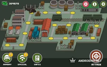 Проходите уровень за уровнем, устраняйте врагов, находите оружие, экипировку и комбинируйте их между собой, создавая более совершенные их виды. Таким образом, ваш коммандос будет с каждым разом сильнее и сильнее. Уничтожьте всю группировку бандитов и освободите базу.