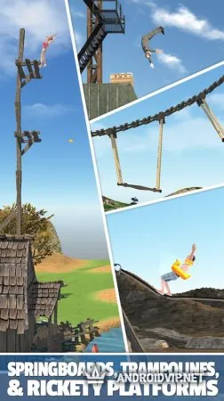 В игре более 50 разновидностей прыжков и большой выбор самых разных персонажей: ныряйте бодибилдером, бизнесменом или забавным чуваком в костюме тигра. Благодаря новому движку, физика в игре стала очень реалистичной. Устанавливайте собственные рекорды лучших прыжков или худших неудач, и делитесь результатами с друзьями!