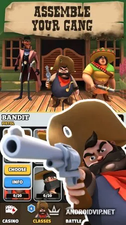 Просторы Дикого Запада открыты только для смелых ребят, которые готовы постоять за себя в любой ситуации. Докажите, что вы из такого теста! Соберите свою команду, состоящую из ковбоев, где каждый представляет один из 12 классов героев: снайпер, разрушитель и другие. Прокачивайте их навыки и снабжайте крепкой экипировкой.