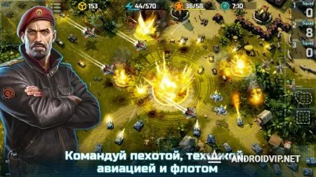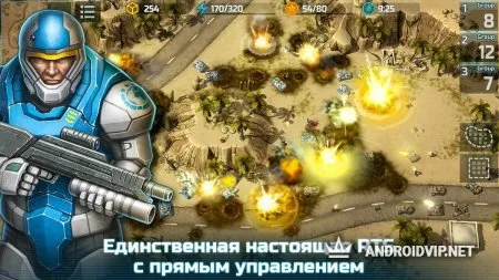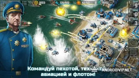 Начните свой тяжелый, но невероятно захватывающий боевой путь: возведите свою базу, создавайте и улучшайте пехоту, танки, морскую флотилию и воздушную технику, направляйте их на защиту своих владений и на атаку вражеских, разрабатывайте рабочую стратегию и тактические ходы, чтобы победить!