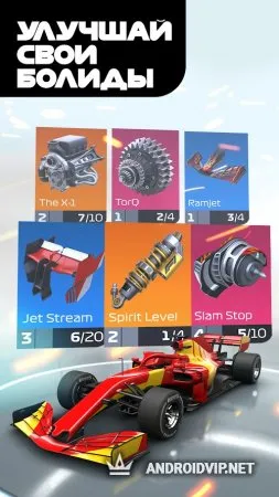 Участвуйте в интересных дуэлях в реальном времени, принимайте рискованные решения во время гонки и побеждайте. Нанимайте и тренируйте пилотов Ф1, прокачивайте болиды, собрав нужные компоненты, продумывайте свою стратегию как на трассе, так и за её пределами.