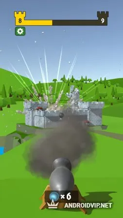 Замок располагается посреди зеленых полей, красоту которых дополняет качественная, но простая графика, приятная глазу. А красивые анимации взрывов и падений явно пойдут на пользу хорошему настроению.