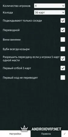 Дурак с настройкой правил немного отличается от классического «Дурака», так как в ней есть возможность изменять правила. Используйте их в любом сочетании, чтобы сделать игровой процесс более разнообразным. Правила также можно отключать и включать по своему усмотрению. Захотите снова поиграть в классическую версию игры – не вопрос!