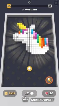 Некоторые из рисунков могут быть построены с преградами – посреди пикселей может находиться ограждение, которое не пробить шариком. Так что игроку придется придумать, как обойти препятствие, используя только один шарик.