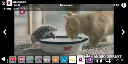 С помощью приложения можно также ознакомиться с телепрограммой. Смотрите сериалы и фильмы, описания к ним и время их показа прямо у себя на смартфоне. Если Вы находитесь в пути и не имеете возможности смотреть в экран, то можно отключить изображение и оставить только звуковое сопровождение. Такой метод позволит еще и сэкономить на энергопотреблении телефона.