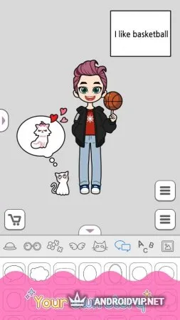 Когда персонаж готов, можно заняться оформлением заднего фона. Выбираете цвет, затем добавляете различные атрибуты дизайна – стикеры, животных, эмоции и так далее. С помощью всех приспособлений можно создать не только оригинального персонажа, но и целую историю, связанную с ним.