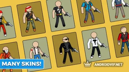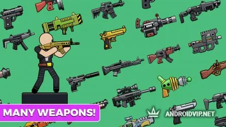 В главном меню необходимо посетить вкладку с настройками и выбрать, с какой стороны будет находиться ваш стикмен. Затем можно определиться с выбором оружия, которого очень много. Правда, чтобы его купить, нужно подкопить немного монет. На выбор представлены пистолеты, автоматы, бластеры, луки, базуки и другие большие пушки. Голову тоже можно украсить различными шлемами и головными уборами. Тут есть и рыцарский шлем, и маска для сварки – в общем, варианты на любой вкус и цвет.
