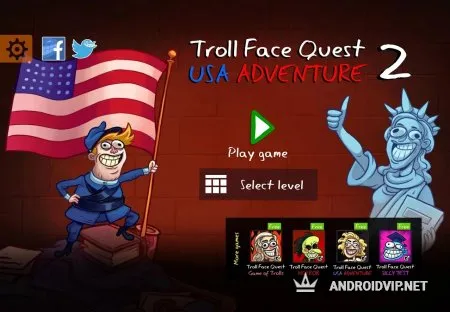 Troll Face Quest: USA Adventure 2 - вот и глобальное возвращение Troll Face в Америку. Эти ребята предлагают присоединиться к их путешествию и разыграть все и каждого, кто попадется на пути от одного побережья США к другому.