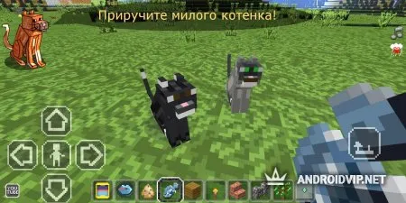 Управлять в игре придется виртуальным джойстиком, который находится в левом нижнем углу. В игровом мире нет никаких ограничений – можно идти в любую сторону и заниматься любыми делами. Исследуйте бескрайние просторы, сооружайте немыслимые постройки, или просто можно расположиться на берегу реки и построить уютный домик.