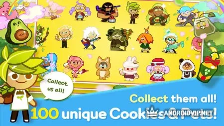 По мере прохождения игры будут разблокировано более 120 видов печенья и питомцев. Соберите их всех, чтобы пополнить свою коллекцию предметов. Для достижения нового рекорда можно улучшать характеристики героя и его питомца. Каждый месяц игроков ждут акции и подарки.