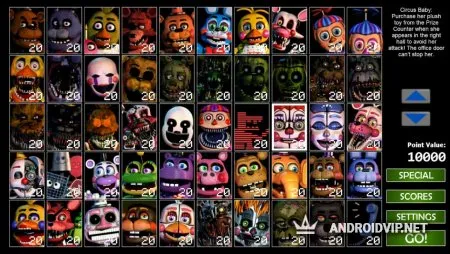 В Ultimate Custom Night число аниматроников достигло 50 штук, и у каждого из них присутствуют свои слабости, которые необходимо выяснить, ведь ночью они начнут действовать. Также есть настройка искусственного интеллекта – выставляете необходимый коэффицент, и эти показатели будут задействованы для всех врагов. В этом и есть удобство – нет необходимости настраивать каждого по отдельности.
