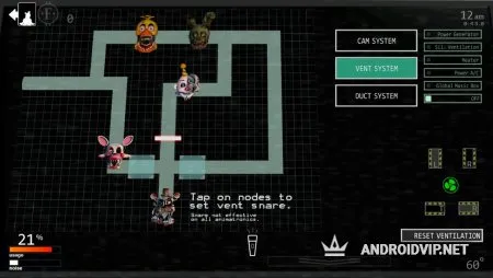 Ну, а в остальном геймплей не отличается от компьютерной версии. Главный герой сидит в комнате и управляет камерами. С наступлением ночи охраннику необходимо наблюдать за вверенной ему территорией, но вдруг там начинается какое-то движение. После этого на одной из камер внезапно отображается аниматроник, которого нужно остановить, иначе он доберется до вашей комнаты и быть беде.