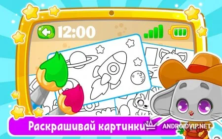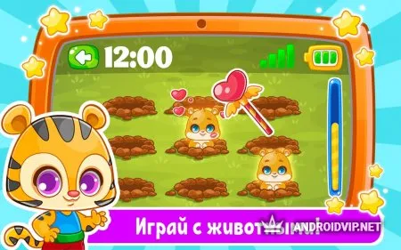 Профессиональное дошкольное образование прямо у Вас в планшете или в смартфоне. Приложение обладает набором мини-игр для малышей 2-3 лет, где в игровой форме учат азам. Например, есть игры, где детки смогут изучать цифры, цвета, буквы, звуки животных и рисование.