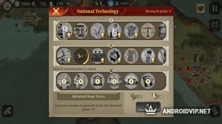 В дополнительной истории можно взять под управление другие войска, которые выступали против Римской Империи, и одержать победу, изменив ход истории, пусть даже и в игре. Исследуйте различные науки, чтоб улучшить свои войска, ведь знание – сила.