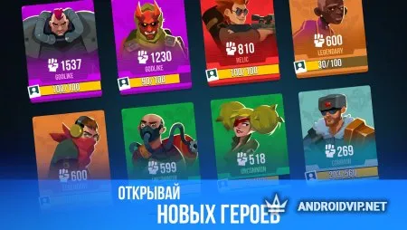 Теперь перейдем к персонажам. Каждый из них обладает не только уникальным именем, но и индивидуальной способностью. Чтобы заполучить персонажа, нужно собрать необходимое количество карточек и достичь определенного уровня. У каждого персонажа есть небольшое описание и действующие характеристики. В правой колонке можно увидеть способности, которые активируются за золотые монеты.