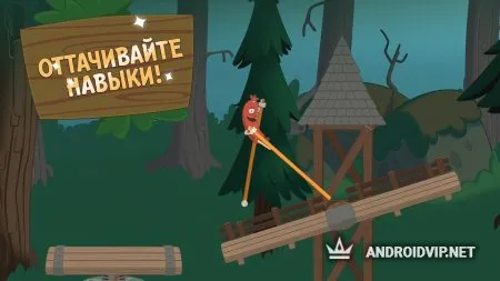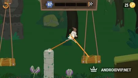 По мере прохождения игры, уровни будут усложнены различными препятствиями. Например, козел может столкнуться с механизмами из деревянных брусьев и камня. Или столкнуться с пчелами, которые движутся вертикально – нужно подгадать момент и проскочить под ними. Также можно увидеть небольшие флажки – это отметка контрольной точки, которая позволяет начать игру с этого места, если рогатый навернулся.