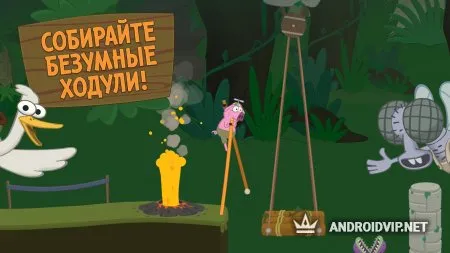 Здесь уровень называется тропой. Завершить уровень можно только в том случае, если дойти до финишной черты тропы. Помимо необычного управления нам предстоит столкнуться с такими сложностями, как препятствия в виде обрывов, водоемов и даже зубастых пираний. Если козел упадет с ходулей, то тропу придется перепроходить сначала.