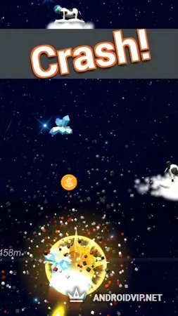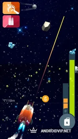 После выхода из атмосферы, начинается более усложненный этап. Теперь в качестве препятствий будет попадаться космический мусор, огромные обломки астероидов, быстро летящие метеоры и даже инопланетяне на своих летающих тарелках!