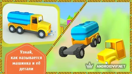 Например, для чего нужна та или иная деталь и почему она так называется. Также ребёнок узнает, зачем нужны те или иные машины и детали. Всего в игре 10 видов транспорта, но и их хватит для того, чтобы ребёнок не заскучал и узнал много нового. Малышам необходимо собрать каждую из этих машинок для успешного прохождения игры. Для облегчения сборки, прилагается инструкция, которая будет понятна даже 3-ёх летнему ребенку.
