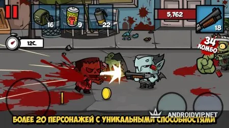 Говоря про огромные орды зомби, хочется отметить и боссов, которые появляются время от времени, а также обладают особыми навыками. Для игры доступны 20 персонажей, у которых также есть свои навыки, способные помочь в сражении с боссами и рядовыми противниками. К тому же, данные способности можно улучшать, увеличивая их урон или же область действия.